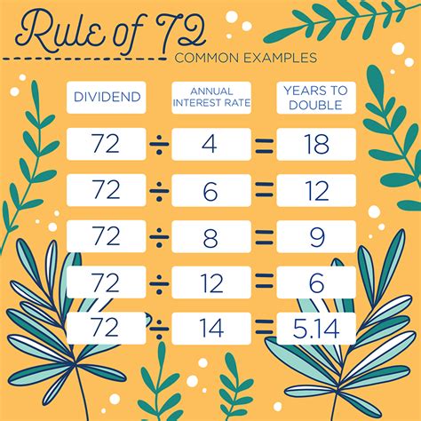 The Rule of 72 is a simple and effective way to estimate how long it will take for your investment to double in value. This can be especially useful for investors who are trying to decide between different investments and need to compare their potential returns over a certain period of time. The Rule of 72 can also help investors plan for retirement by giving them an idea of how their investments will grow over time.
